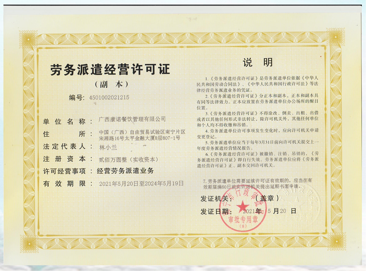 广西康诺餐饮管理有限公司是一家集团餐服务、 食材配送、餐饮培训、餐饮投资为一体的综合性餐饮管理服务公司。